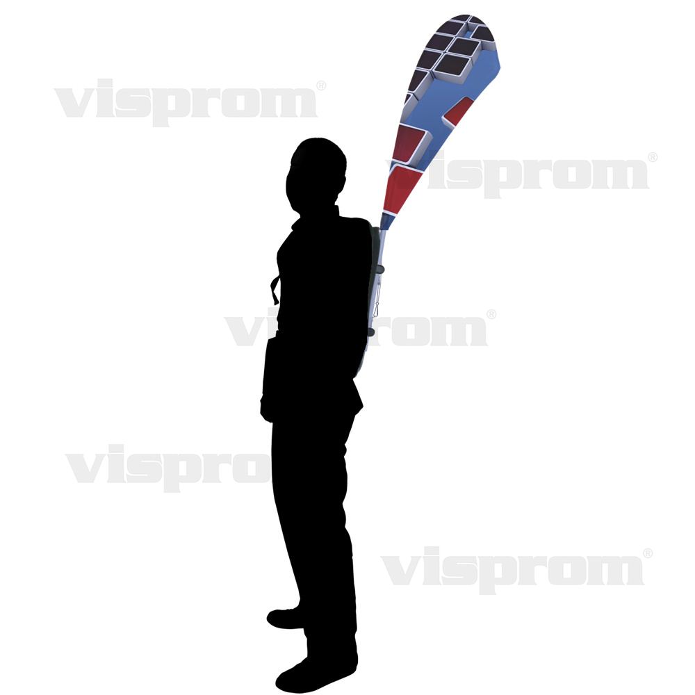 The Backpack Windsail is the perfect wearable display solution for market promotions, trade shows, in shopping mall atrium, or even by a stop light on a busy street.